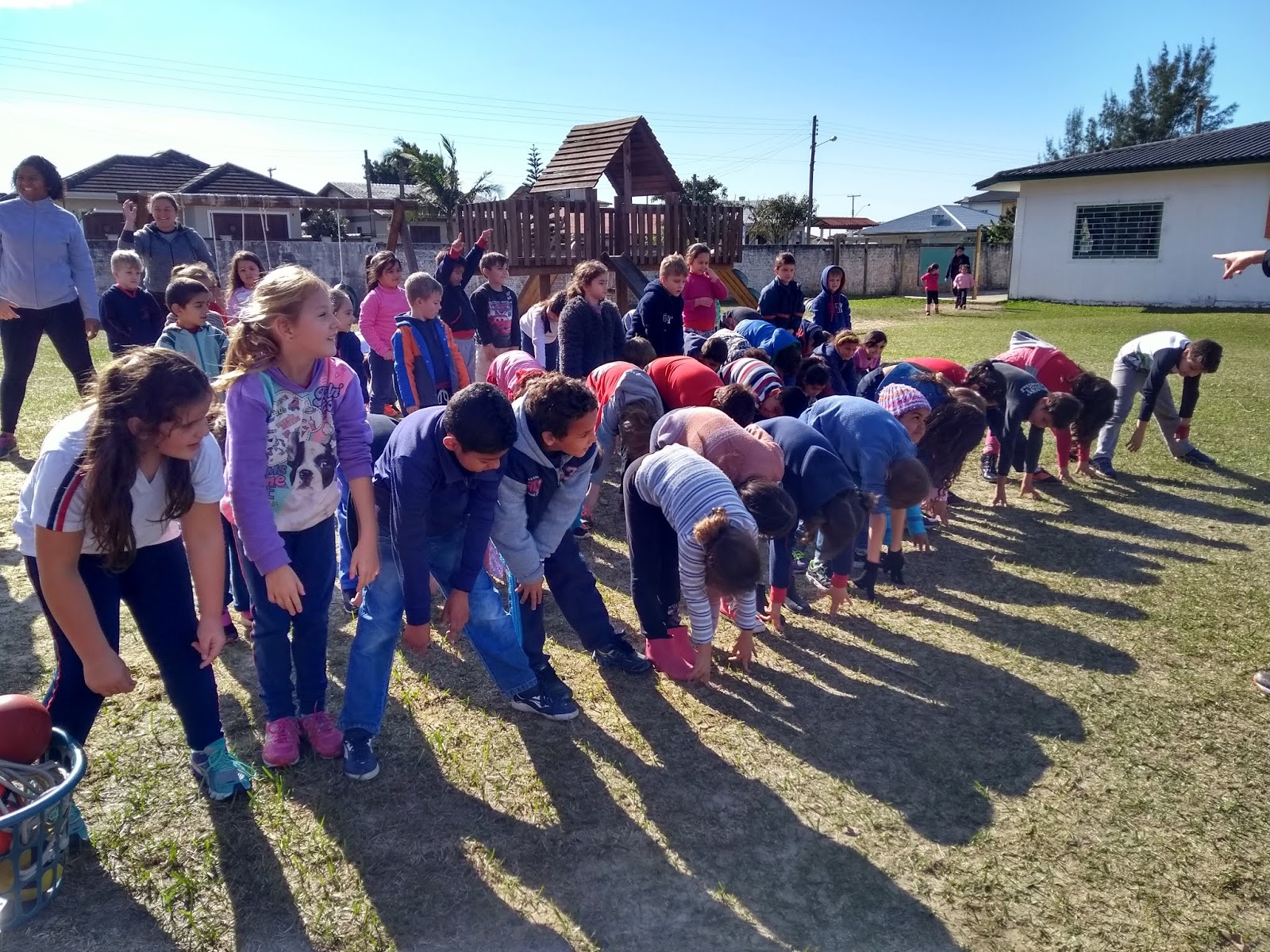 Foi um momento bem legal, em que os alunos foram organizados em equipes, separadas por cores.